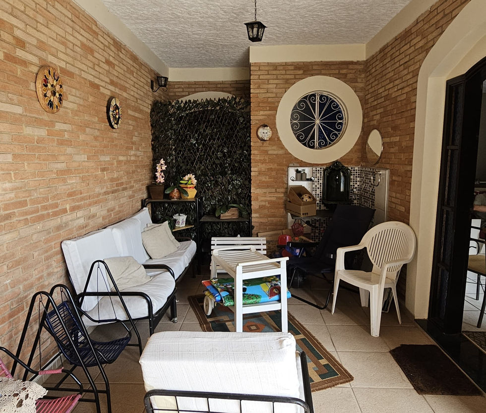 Casa principal: Sala espaçosa, 3 dormitórios (sendo 1 suíte) e banheiro social.